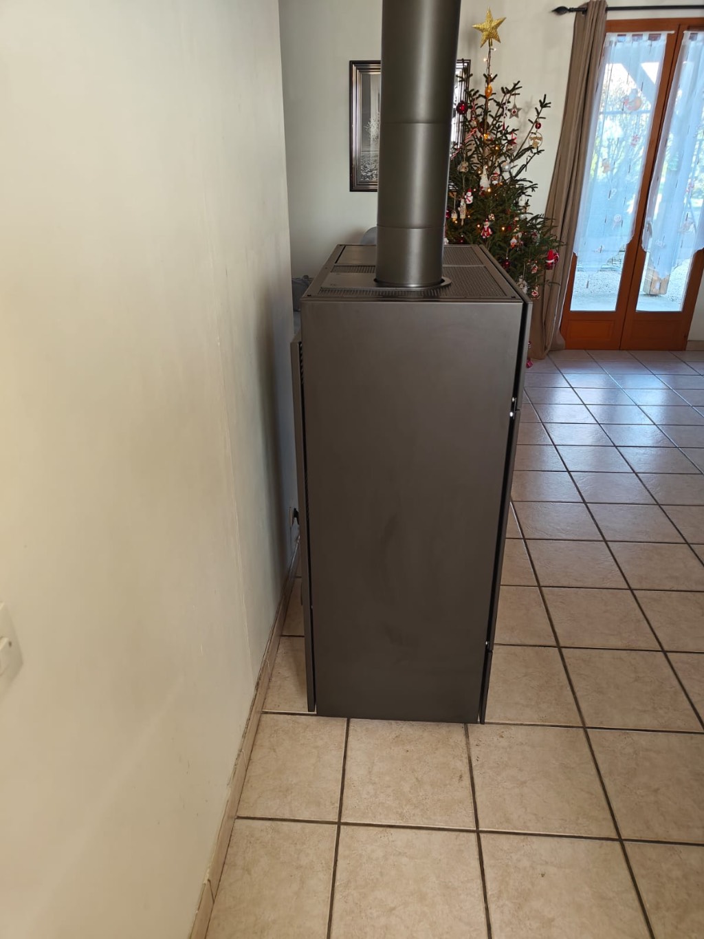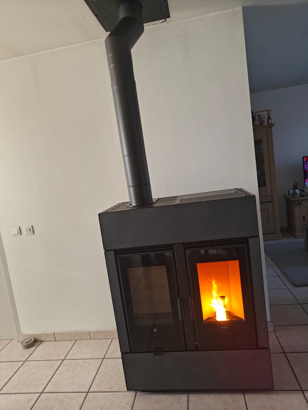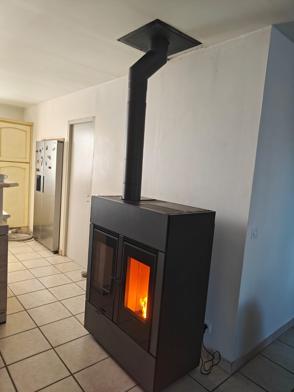 nstallation d’un poêle mixte Dual Air Soap Stone, poêle permettant d’utiliser à la fois du bois et des granulés avec une double combustion et un nettoyage automatique du creuset, offrant ainsi un chauffage performant, flexible et facile d’entretien.